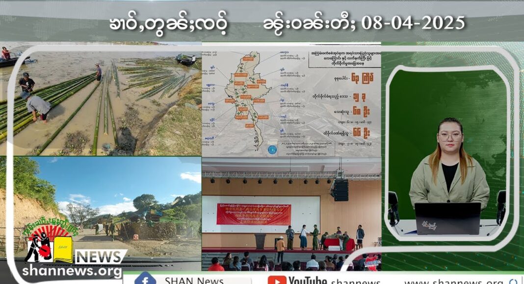 SHAN News News Hours (Morning Section) 08-04-2025 “ႁုပ်ႈၶၢဝ်ႇတွၼ်ႈၸဝ်ႉ ၸုမ်းၶၢဝ်ႇၽူႈတွႆႇႁွၵ်ႈ” ႁူဝ်ၶေႃႈၶၢဝ်ႇ ၼႂ်းတွၼ်ႈၸဝ်ႉဝၼ်းမိူဝ်ႈၼႆႉ ဝၼ်းတီႈ 08/04/2025 1− ဝၢႆးၽႅၼ်ႇလိၼ်ဝႆ ၼႂ်းၶၢဝ်းတၢင်း 1 ဝူင်ႈ သိုၵ်းမၢၼ်ႈပွႆႇမၢၵ်ႇ ဢမ်ႇယမ်း 63 ပွၵ်ႈ ၵူၼ်းမၢတ်ႇၸဵပ်းလူႉတၢႆ 100 ပၢႆ 2− သိုၵ်းၵဝ်ႈၵၢင်ႉ ပၼ်ငိုၼ်းၵူၼ်းမိူင်း ၸိူဝ်းႁိူၼ်းယေးၺႃးမၢၵ်ႇလူႉၵွႆ ၼႂ်းၸႄႈဝဵင်းလႃႈသဵဝ်ႈ 3− ၵူၼ်းမိူင်းၼႂ်းၼွင်ႁၢႆးယႃႈ လူဝ်ႇတၢင်းၸွႆႈထႅမ်မႆႉပူၵ်ႇမႆႉမွင် တႃႇသၢင်ႈႁိူၼ်းယူႇ ၸူဝ်ႈၶၢဝ်း