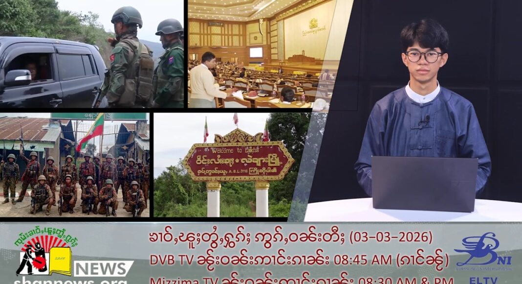 ငဝ်းႁၢင်ႈသဵင်ၾၢႆႇတႆး BNI/SHAN TV Program, 03/03/2026 • သိုၵ်းမၢၼ်ႈပိုၼ်ၽၢဝ်ႇမၵ်းမၼ်ႈ ဝၼ်းတေၸတ်းပၢင်ၵုမ်သၽႃးသေ တေယုၵ်ႉတၢင်ႇၸွမ်ပွင်ၸိုင်ႈမႂ်ႇ ၵူၼ်းၼုမ်ႇၶဝ်တႄႉႁၼ်ထိုင်ဝႃႈ ဢမ်ႇၸၢင်ႈၵေႃႇသၢင်ႈလႆႈဝၢၼ်ႈမိူင်းဢၼ်ငမ်းယဵၼ်။ • သိုၵ်းတဢၢင်း TNLA တင်း သိုၵ်းၵဝ်ႈၵၢင်ႉ MNDAA ၶဵင်ႈၶႅင်ၵၢၼ်သိုၵ်းတေႃႇၵၼ်ႁၢဝ်ႈႁႅင်းမႃး ၵူႈဝၼ်းလႄႈ ႁဵတ်းႁႂ်ႈၵူၼ်းမိူင်းပိုၼ်ႉတီႈၶဝ် ထူပ်းတၢင်းယၢပ်ႇၽိုတ်ႇ တႃႇၵႂႃႇမႃးႁႃၵိၼ်။ • ၼႂ်းၸႄႈဝဵင်းၼွင်ၶဵဝ်ၼႆႉ သိုၵ်းမၢၼ်ႈၶဝ်ႈၵုမ်းၵမ်လႆႈၶိုၼ်းမီးၶၢဝ်းတၢင်းၸမ် 8 လိူၼ်ယဝ်ႉ။ ၵူၺ်းၵႃႈ ၵူၼ်းမိူင်းပိုၼ်ႉတီႈၶဝ်တႄႉ တိုၵ်းထူပ်းတၢင်းယၢပ်ႇၽိုတ်ႇ တႃႇတေမႄးပူၵ်းပွင်ၶိုၼ်းတီႈ ယူႇတၼ်းသဝ်းလႄႈ ပႆႇၸၢင်ႈပွၵ်ႈၶိုၼ်းႁိူၼ်းယေး ဢဝ်လွင်ႈၸိူဝ်းၼႆႉသေ တေမႃးႁၢႆးငၢၼ်းၼႄပၼ်ၵႂႃႇၶႃႈဢေႃႈ။